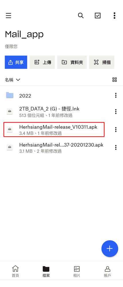 請將Mail App下在後上傳至雲端檔案伺服器, 如Dropbox或OneDrive..等